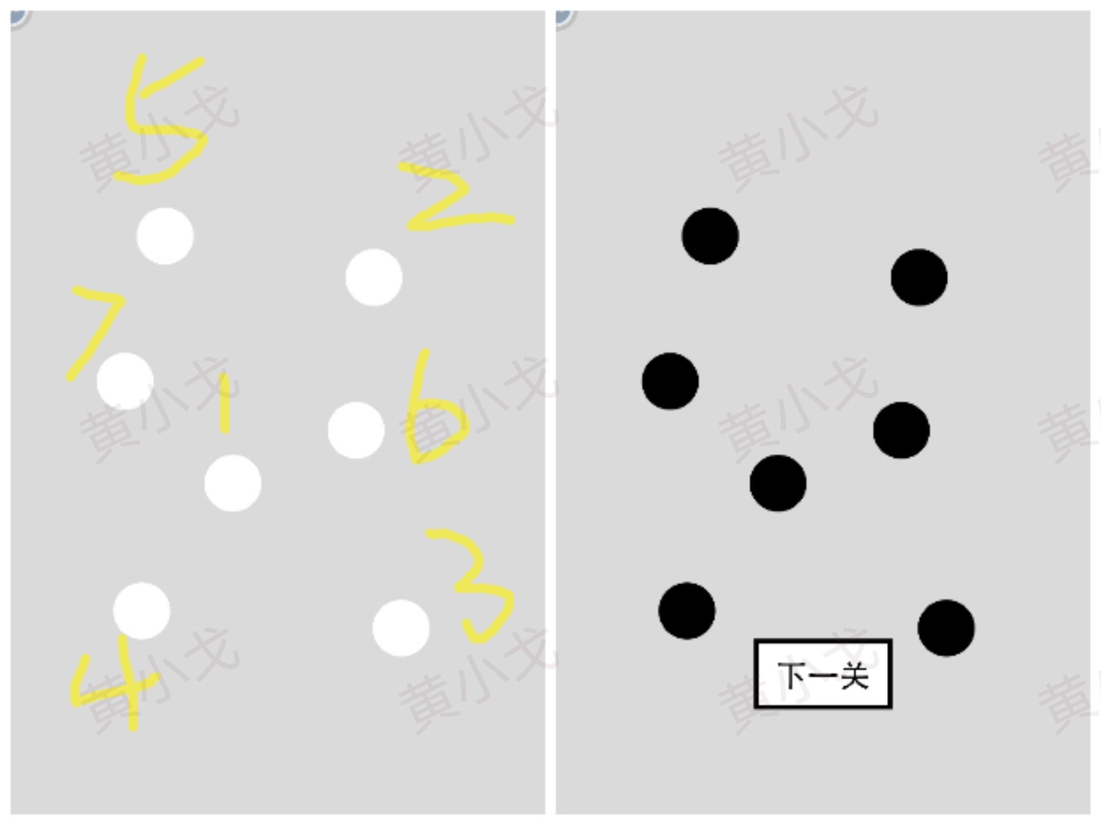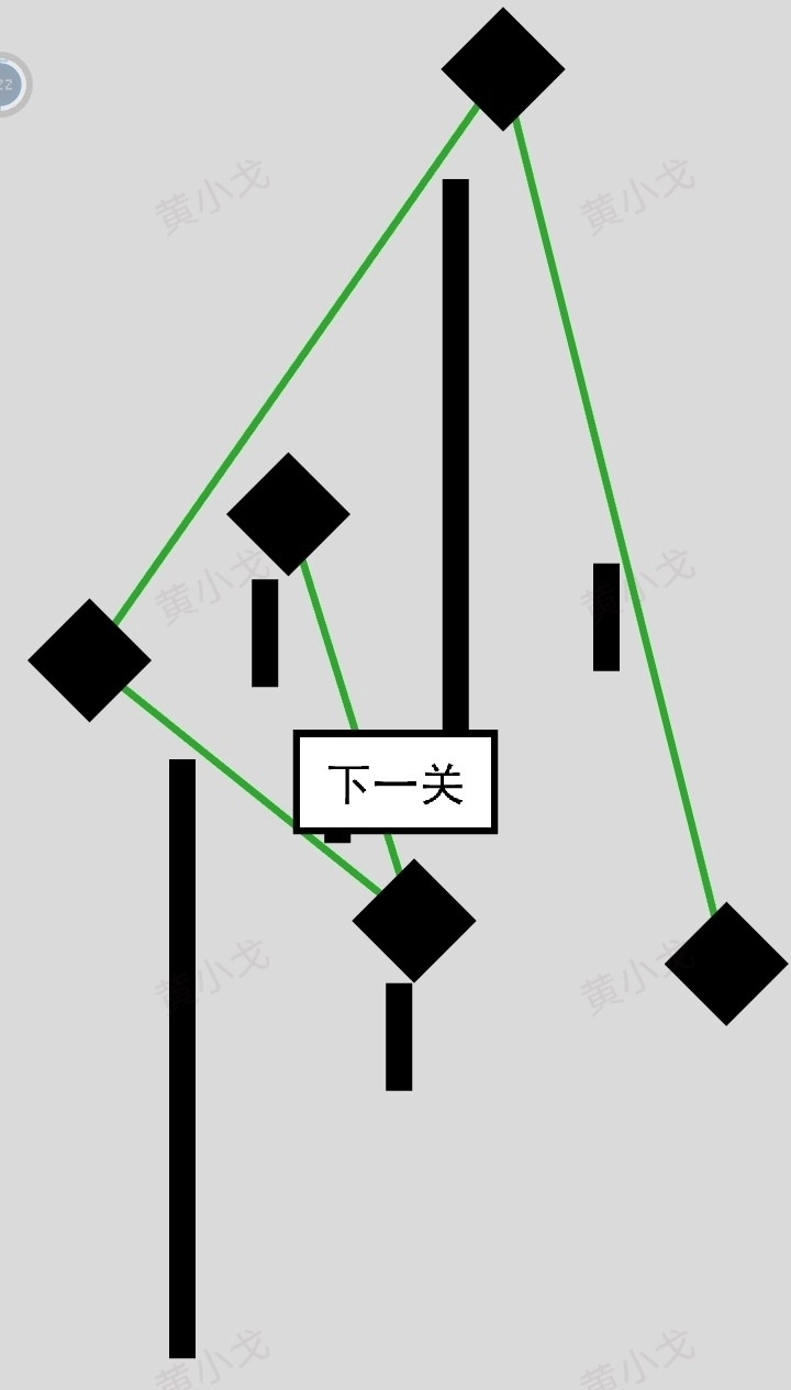 把黑色圆圈连起来,点击下一关按钮