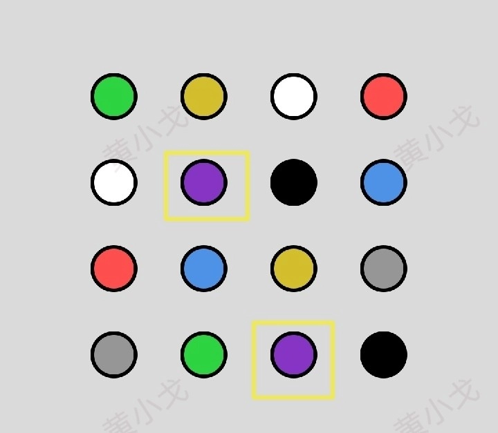 点击颜色相同且数量较多的圆圈,总共操作10次;之后点击下一关按钮。