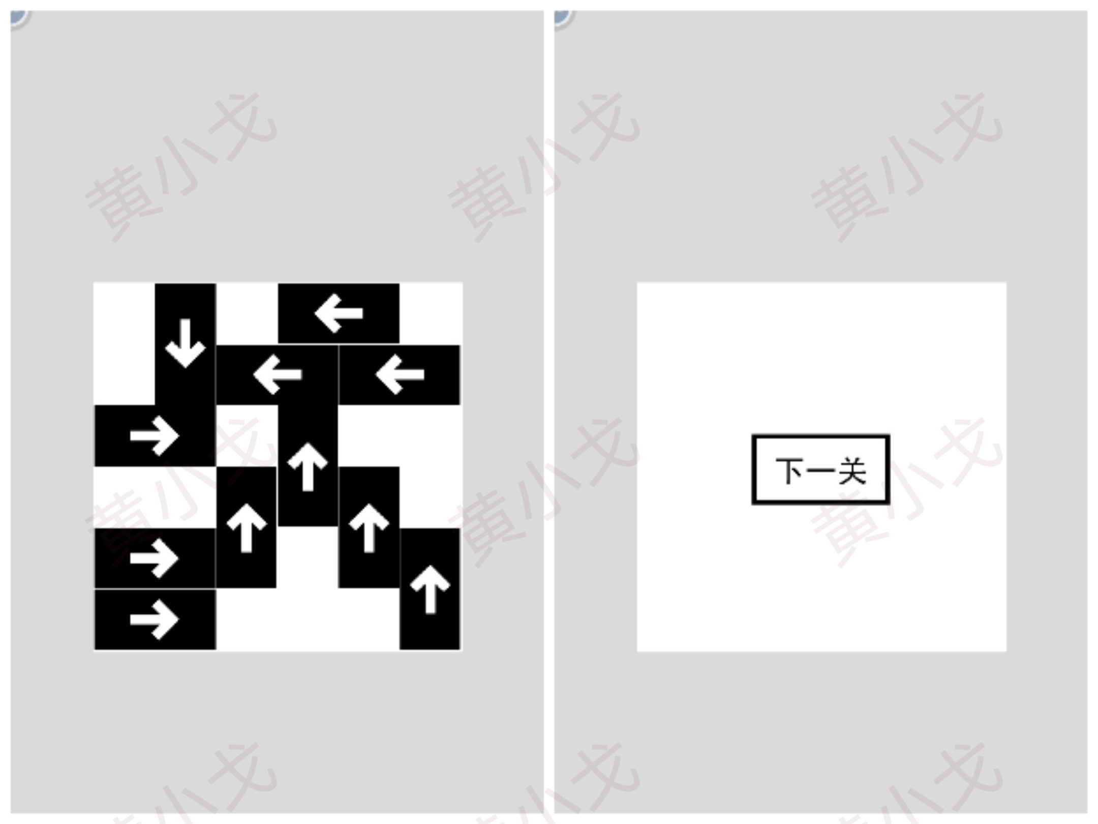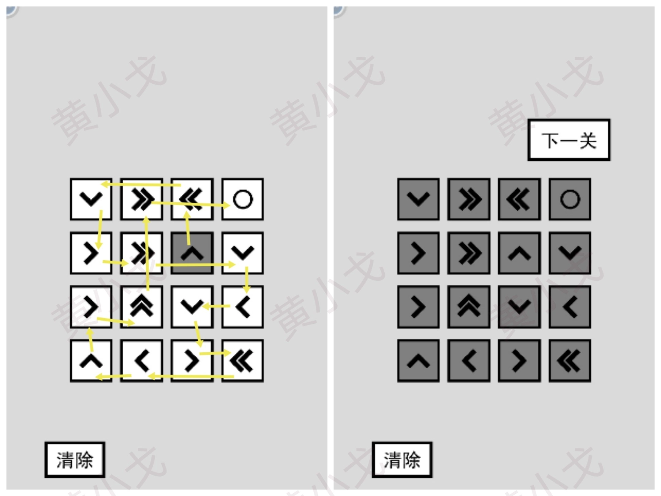 消除相同朝向的箭头方块,点击下一关按钮