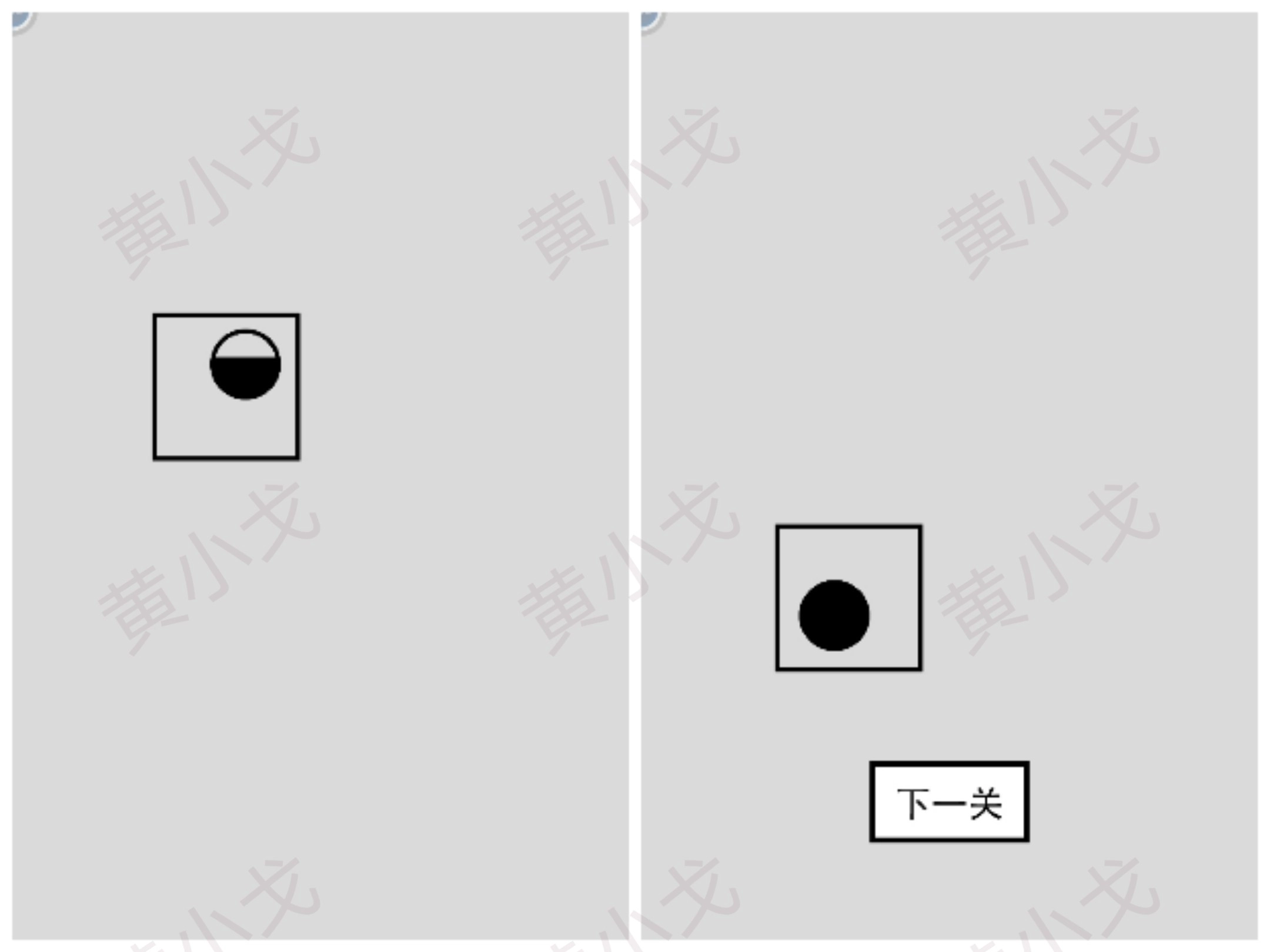 拖动黑圆到白圆处,不能碰到方块;点击下一关按钮