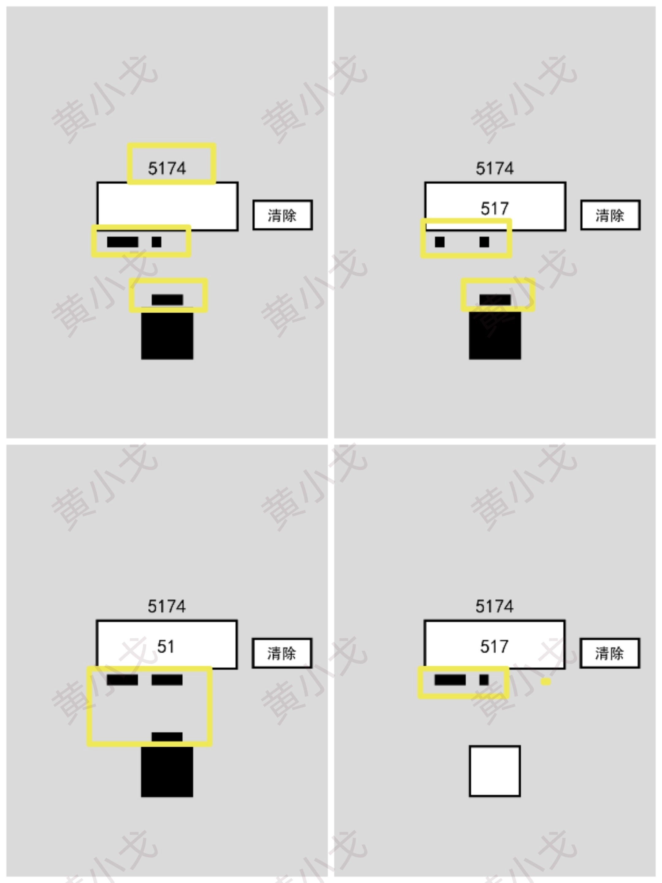 有一处错误在第二行第一个位置:这个地方是用白色部分构成了数字8。