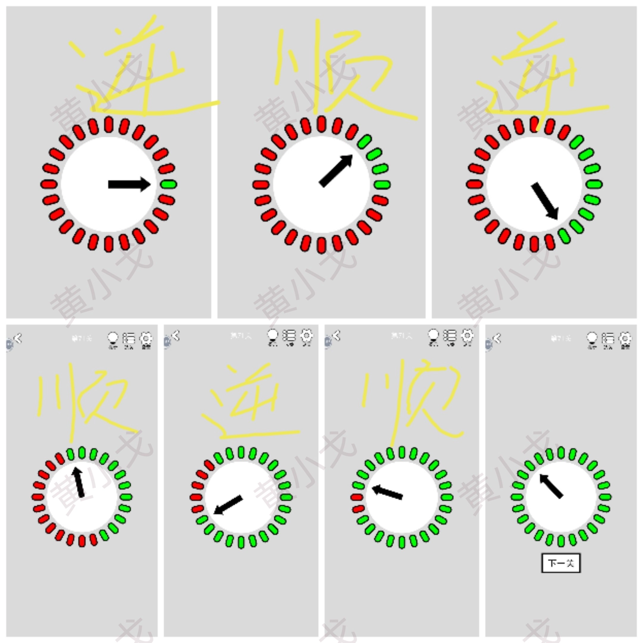按特定顺序调整时针;点击下一关按钮