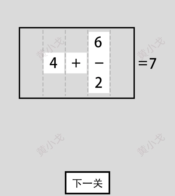 按照指引调整数字与符号方块的布局,完成后点击进入下一关的按钮。