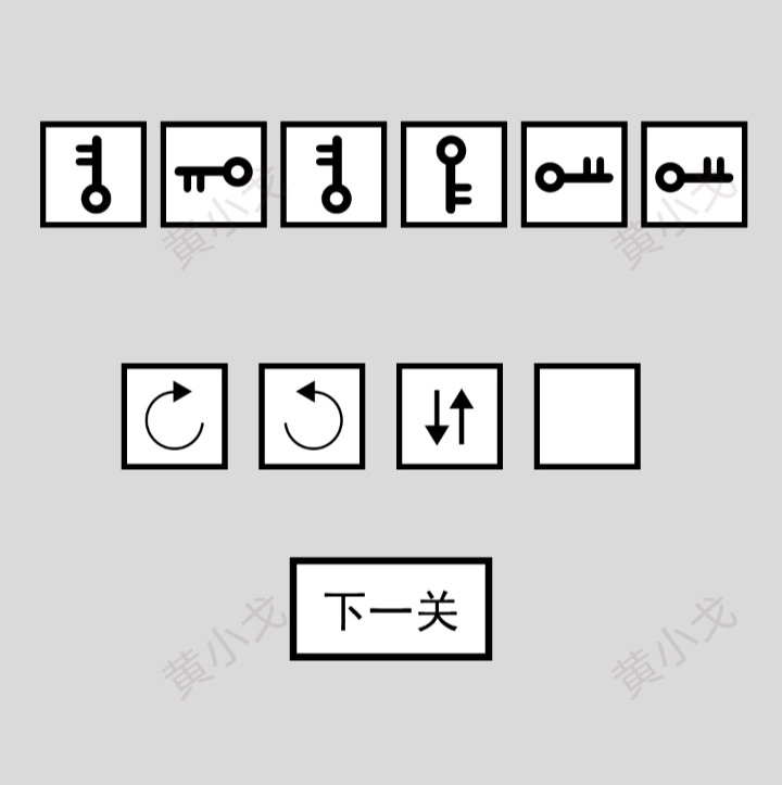 根据方块内钥匙的变化,点击下方的按钮;再点击下一关按钮。