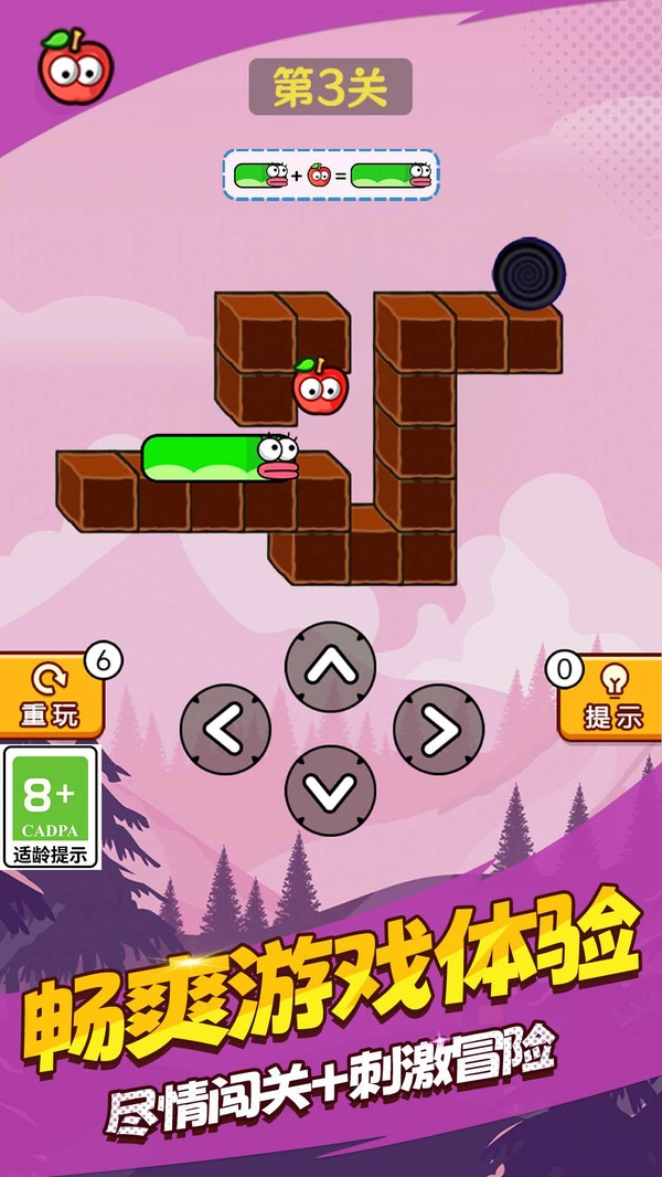 为小蛇设计行进路径,避开途中的阻碍物,在成功获取食物后,迅速前往传送入口,进入入口即可完成关卡挑战。