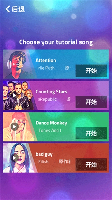 进入歌曲,点击黑色方块上的开始,游戏就正式开始。