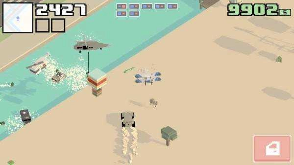 这段像素风的驾车画面运行起来十分流畅,虽然爆炸特效没有进行深度优化,但对手机的性能负载并不算大。