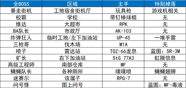 在农场镇区域,黑商会对外售卖黑卡;要是成功击败黑商,有一定概率能获得黄卡。而位于地图右下角的矿长,击败他后则有几率掉落蓝卡。另外,伐木场右上角的那间小屋子(也就是塔科夫紫卡小屋),里面有概率刷新出紫卡。至于左上角雷达站的BOSS——喷子,将其击败后有机会得到神秘钥匙。
