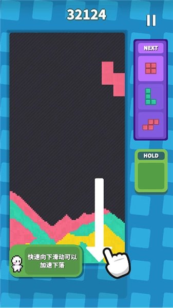 旁边有提示下三个方块的形状与颜色,能让方块的放置更快捷。