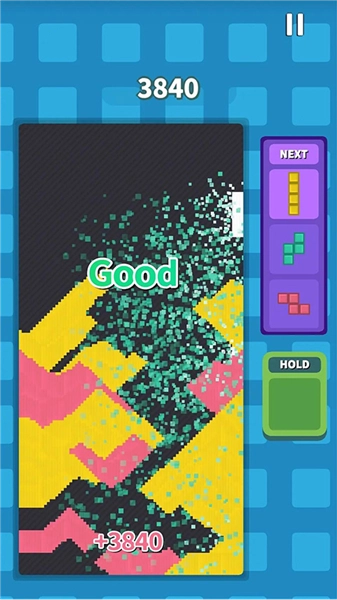 这款游戏的核心玩法是移动、旋转方块,把相同颜色的方块汇集到一处,一旦达成消除条件,便会触发华丽的消除特效,玩家也能同步获取对应的分数。