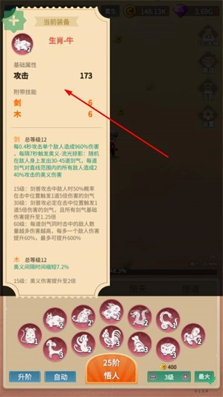 在游戏界面里,找到与悟人有关的区域,点击该区域内的生肖图标,例如生肖牛的图标。