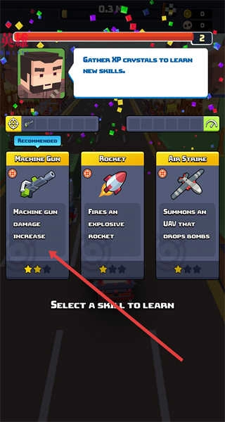 玩家在游戏中积累到一定路程时,收集XP水晶可解锁技能。此时优先选择提升机枪伤害,能增强前期的输出能力,帮助玩家更好地应对初期出现的敌人。
