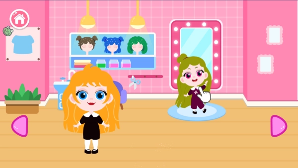 点击画面左右两侧的按钮,就能切换到不同场景,给小公主做各式各样的美妆改造。