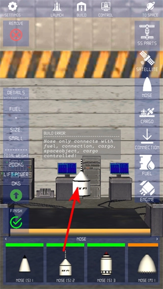 空间站部件组装完成后,点击右下角与ss空间站相关的零件,确认空间站建造完毕。