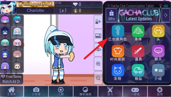 进入游戏后,找到右侧上方的“已创建角色”选项,点击它就可以了。