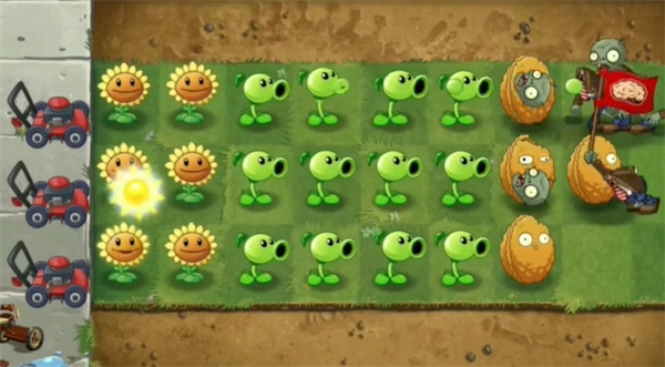 向日葵通常种在靠后的几排,而输出型植物则种在前排,这样它们就能直接攻击僵尸了。