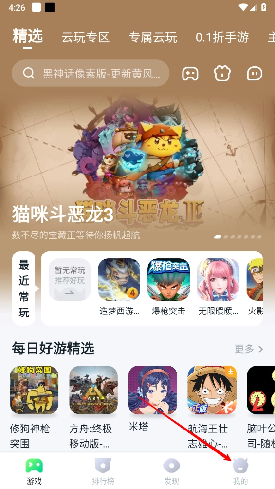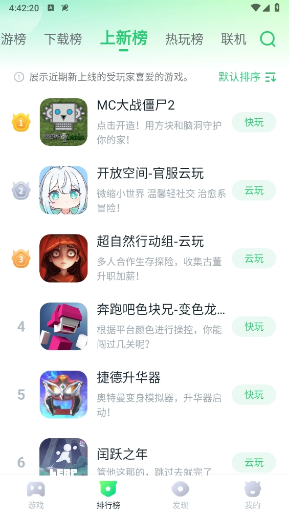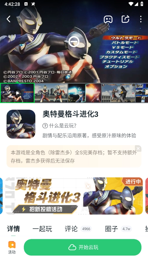 游戏详情页面的“开始云玩”“开始快玩”“游戏”“打开游戏”按钮,以及存档、活动图标,将统一下移至页面底部。