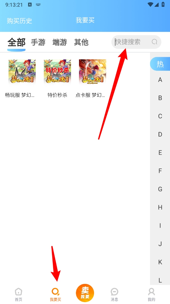 也能够切换到“我要买”板块,通过分类选择的方式,或者直接点击搜索框并输入关键字来开展搜索。