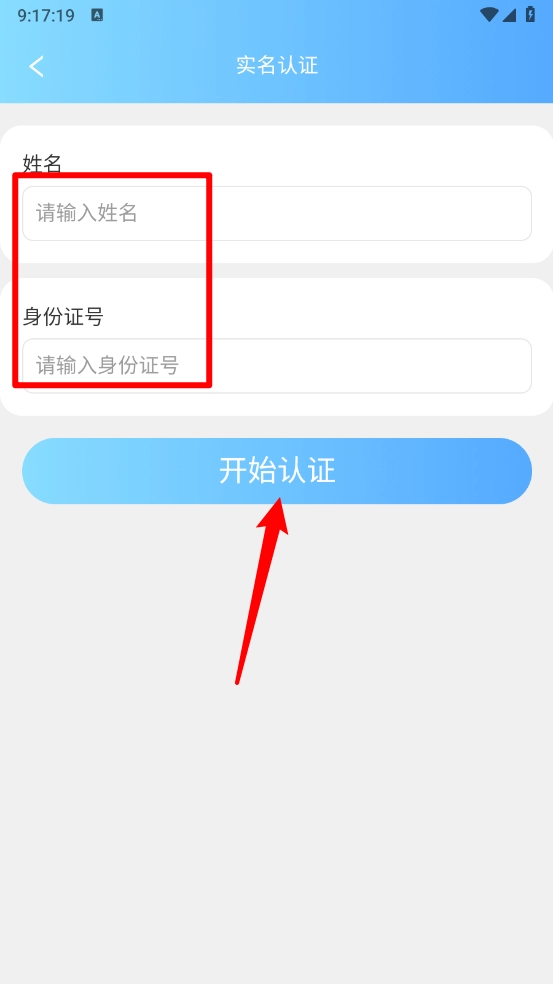 最后输入实名信息,点击"开始认证"即可。