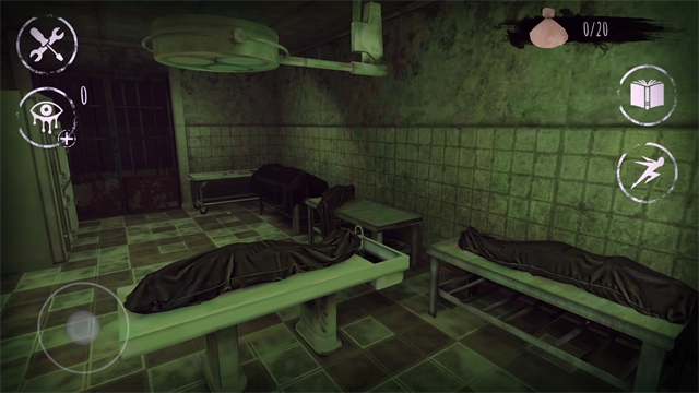 游戏场景里一片漆黑,四周什么都看不清,不过靠近后周围会逐渐变亮。这个地图给我的感觉更像个迷宫,走了好一会儿,结果又回到了原点。不过游戏操作挺简单的:左边是移动角色前进,滑动屏幕能让角色转向。游戏采用第一人称视角,3D画面让视角显得很真实,里面还会出现耗子,氛围阴森森的。