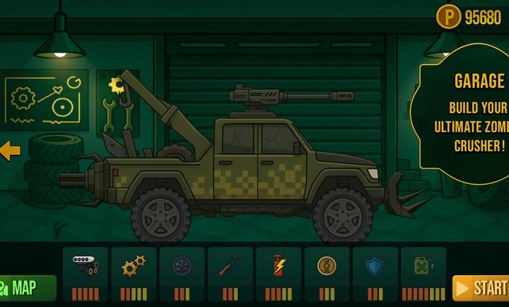 在正式进入游戏前,玩家能够对自己的车辆进行升级操作。你可以挑选不同的设施来提高车辆等级,等升级完成后,点击“start”按钮就能开启游戏了。