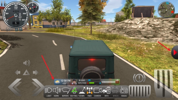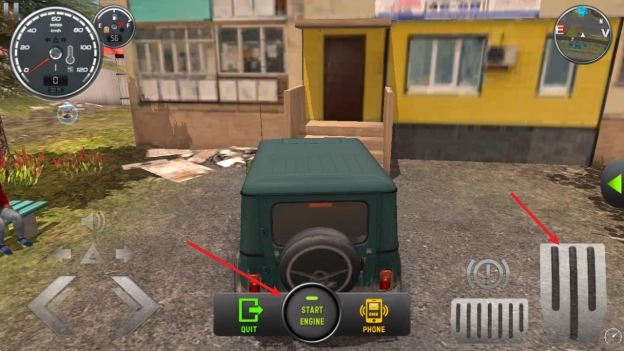 游戏开始后,长按中间的按钮来启动汽车,接着点击右侧的长踏板进行加速。