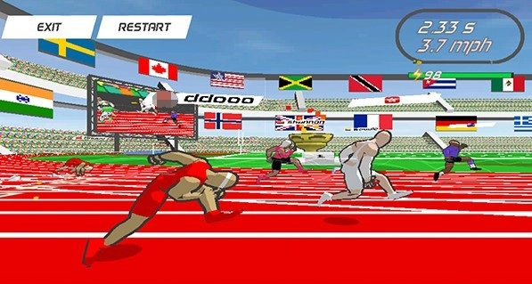 点击屏幕的速度越快,运动员奔跑的速度也就越快。