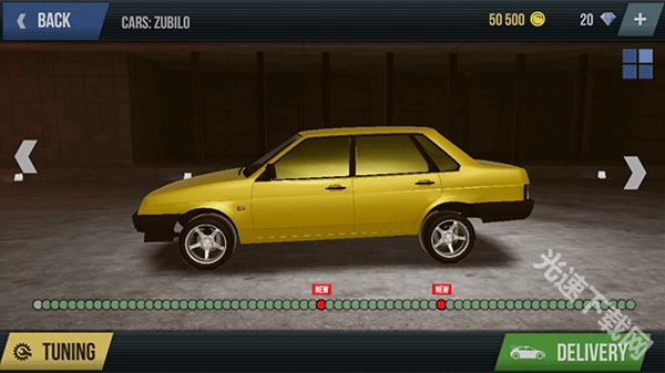 在这个页面上,玩家可以通过点击左右两侧的滑动按钮,挑选众多品牌的车辆。
