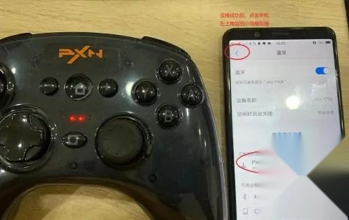 连接成功后,在“已连接的设备”列表里能看到成功连接的手柄型号为pxn-9628,接着点击左上角的返回按钮回到小鸡模拟器。