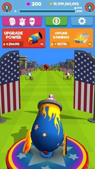 玩家不仅能为大炮更换皮肤,还能用游戏币升级它的各项属性,让大炮的发射力变得更强,从而把人物发射到更远的地方。