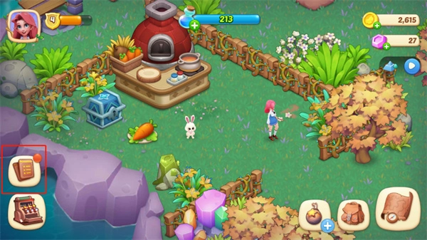 打开梦幻魔法屋这款游戏后,在界面的左下角能看到任务系统,只需点击它就能进行查看。