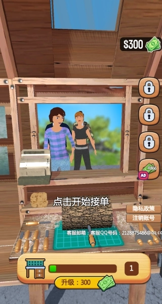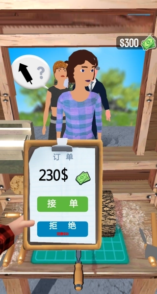 2、升级完成后点击开始接单,进入订单界面,查看客人需求与报酬,开启专属木工雕刻之旅。
