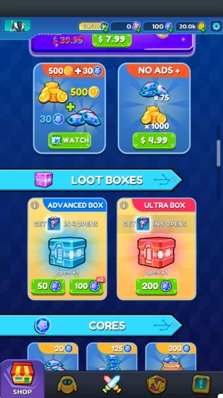 4.消耗金币可在商城兑换宝箱,开启宝箱能获得各类道具,这些道具可用于提升机器人的各项属性!
