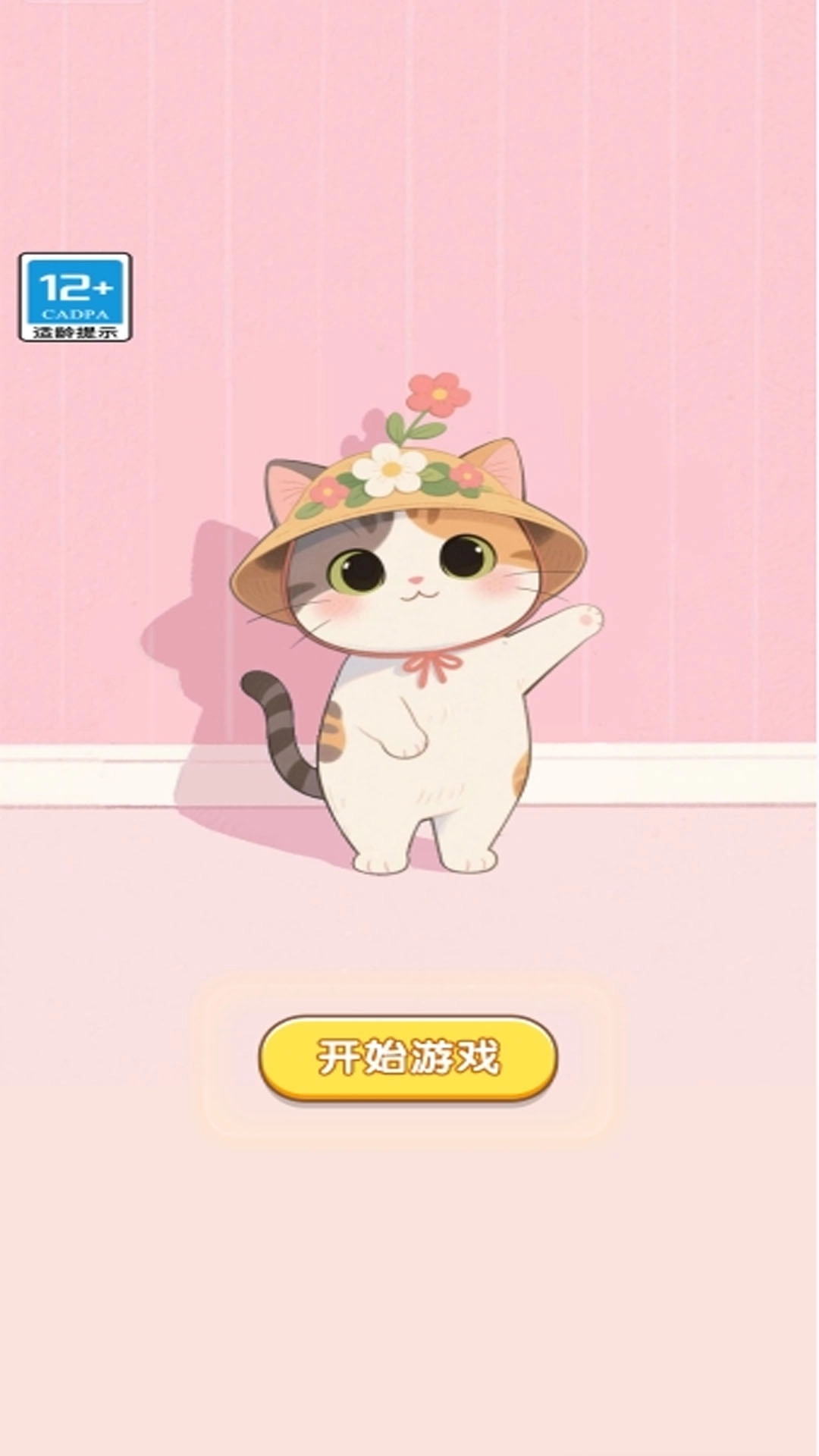 1、进入游戏后,你会看到一只可爱的小猫,点击开始按钮就能开启挑战啦。