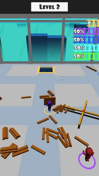 操控紫色角色收集黄色物品,避开障碍物,顺着路径前进,让进度条增长以通过关卡。