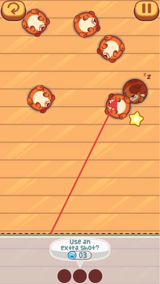 要是还有没被唤醒的宠物,就点击“Use an extra shot?”来消耗额外的次数,调整好角度后再次撞击,保证把所有宠物都唤醒,这样就能满足关卡的胜利条件了。