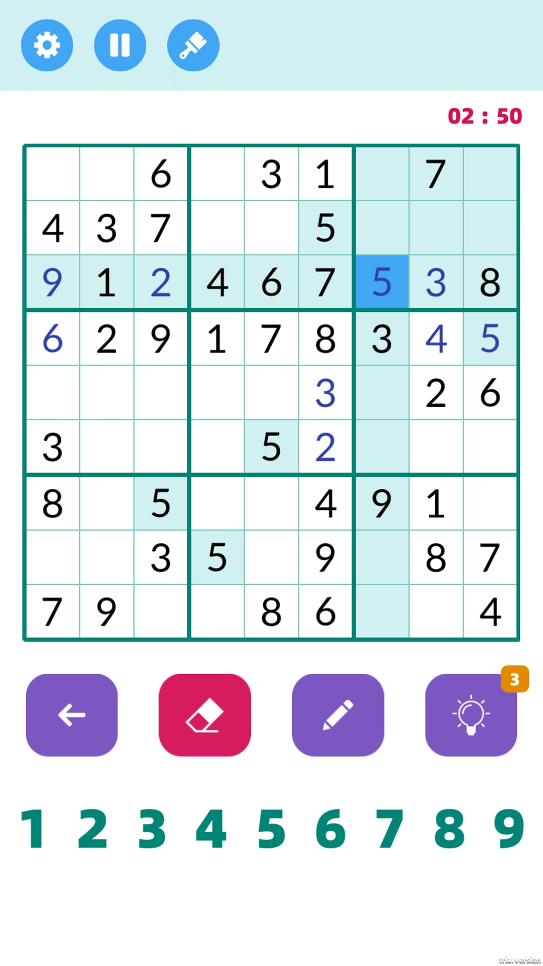 《脑洞数字挑战》是一款极具挑战性的数独闯关游戏,游戏包含大量高难度关卡供玩家挑战。玩法是在九宫格中填入正确数字,规则简单明了,但实际挑战难度颇高,玩家需通过多次尝试摸索技巧才能顺利通关。游戏画面简洁,操作方式也十分简单,各年龄段玩家都能轻松上手体验。感兴趣的玩家快来本站体验吧!