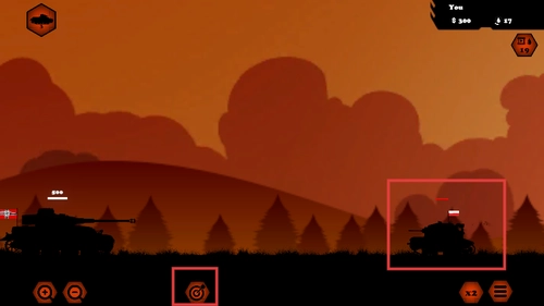 3、开启瞄准系统锁定敌方目标,点击攻击按钮发动进攻,同时关注自身血量和敌方火力情况,及时转移阵地。