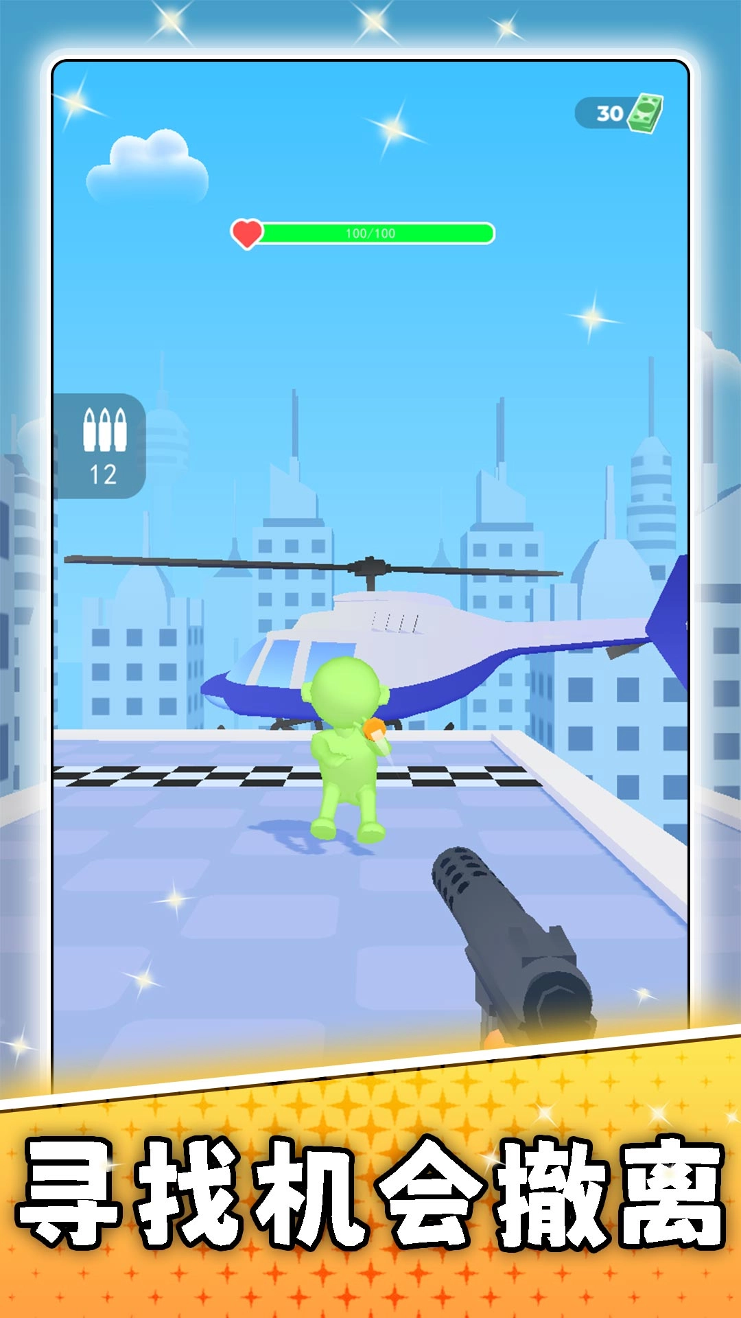 1、以基础手枪作为初始战斗装备,借助点击与滑动的操作方式进行瞄准射击,清除场景内的敌人以推进关卡进程。
