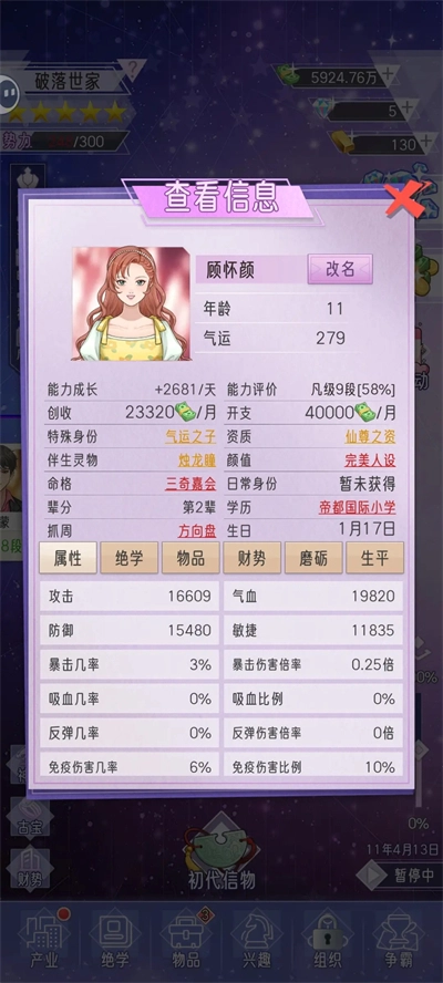 1、支持玩家对家主的形象、性别、性格等进行个性化设定,从而塑造出专属于自己的独特豪门家主形象。