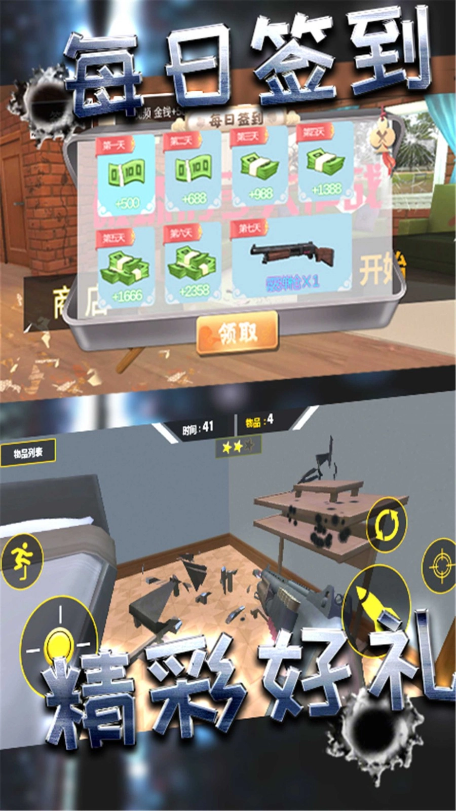 2、每天登录游戏后,记得去签到界面领取当天的奖励,连续签到能拿到更多金钱和稀有武器,帮助积累资源。