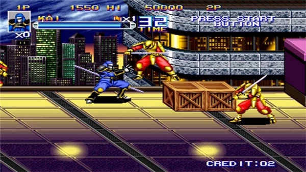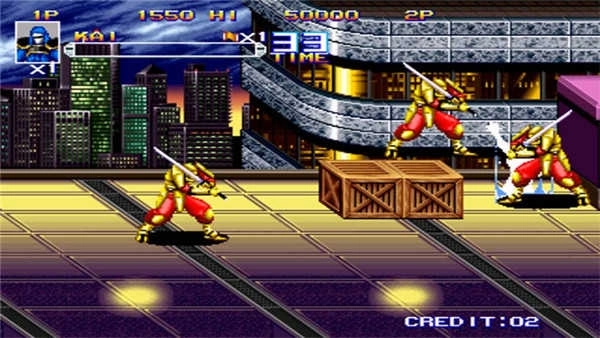 共有4个主角,分别是蓝衣忍者、美女忍者、金刚人和狼人,每个人的出招各有不同,而且还有类似飞机类游戏的保险,但这些都不是这个游戏惹人注意的地方,这个游戏最特别的地方就是我方可以变成任意的敌方角色,而且敌人的武功也各有特色,非常好玩...一共有六个操作键,作用分别是轻拳、轻脚、重拳、重脚、跳跃、变身。