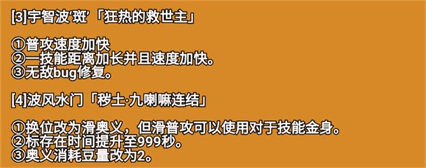 角都:二技能1段炸气不再具有无敌帧,移速增加时间缩短。
