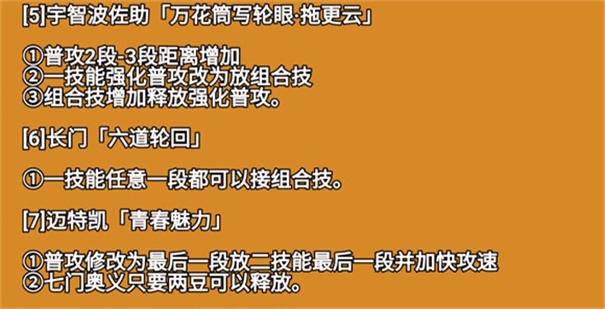 1、二技能滑普攻释放方式修改为长按二技能,长按增加后续木龙下冲生成木遁抓取效果,木遁可以被技能点燃。 2、二技能长按后可以更快衔接一技能取消后摇,一技能后摇可以更快衔接二技能取消后摇。 3、一技能滑普攻不再增加冷却。 4、组合技、须佐能乎状态下双技能伤害增加。