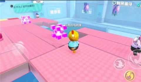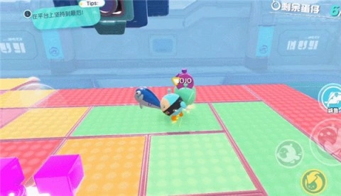 1、除了基础的跑跳操作,游戏里还存在一个叫“滚蛋”的技能。开启该技能后,蛋仔会变成球形向前快速滚动,不过此技能需在障碍物不多的场景下使用,比较适合在竞速赛的直道阶段运用。