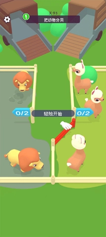 第三关,快来帮助把所有动物进行分类,移动中间的护栏将不同的动物分隔开!
