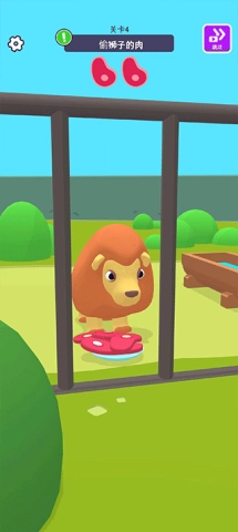 在第四关,猴子要伺机偷狮子的肉,等待狮子回头时的小心谨慎,可以成功实现计划!
