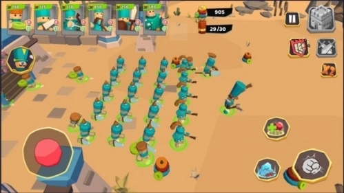 玩具战争是一款超级有趣的卡通画风模拟策略战争游戏,玩家将在游戏内扮演一位战场指挥官,你需要招募并训练玩具士兵,之后派遣他们去攻打敌方的城堡。游戏内有着超多种不同的兵种,不同兵种的攻击方式与属性也都各不相同,你需要合理的搭配出战的士兵,还要将他们升级,提升属性,这样才能训练出一只百战百胜的军队!如果你对这款游戏感兴趣的话,那就赶快体验吧!