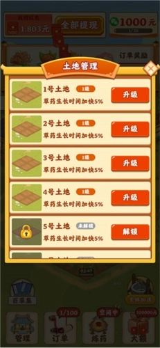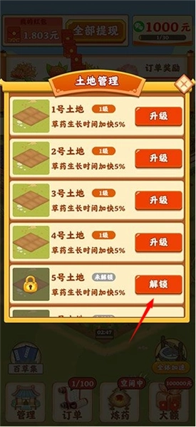 2、新开的窗口中就能升级土地增加药草的生长速度
