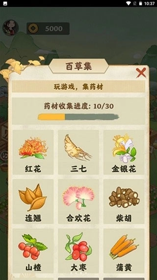 2、收获的或者得到的草药会在百草集中记录,玩家可以在这里查看每种药材的功效和使用方法。
